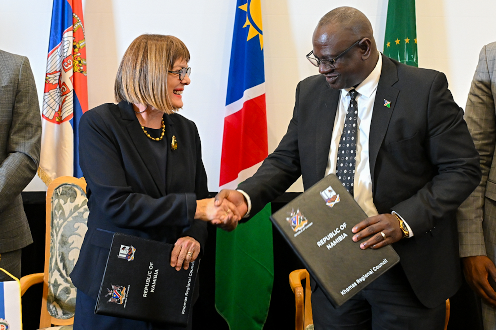 Председница Покрајинске владе Маја Гојковић данас је у Виндхуку, у Републици Намибији, потписала са председником Регионалног савета Комасa Стефанусом Нденгуом Писмо о намерама о успостављању пријатељских односа и сарадње у областима привреде, пољопривреде, трговине, енергетике, науке, технологије, образовања, културе, туризма, спорта и другим областима од заједничког интереса.