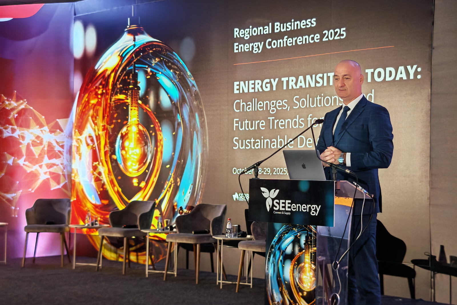 Конференција, која се одржава 28. и 29. октобра у Новом Саду, окупља више од 300 учесника—доносиоце одлука, стручњаке, инвеститоре, представнике индустрије и технолошке партнере—и обухвата панел дискусије, презентације, радионице, Б2Б састанке и изложбени део на тему енергетске ефикасности, обновљивих извора, декарбонизације и дигитализације енергетике.