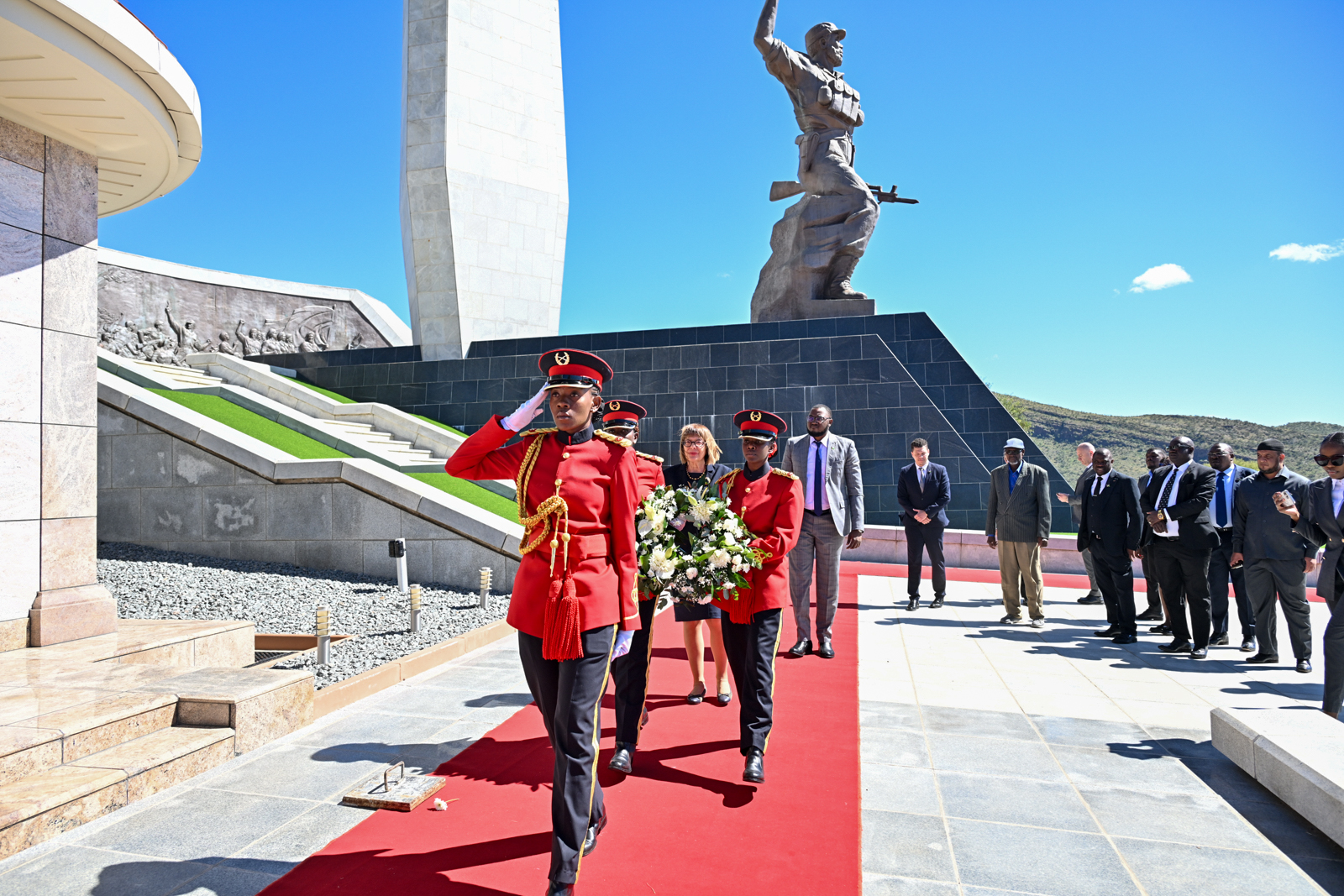 Председница Гојковић је овом приликом положила венце у Меморијалном комплексу Поље хероја, изражавајући на тај начин поштовање према борцима који су дали животе у борби за слободу и независност Намибије.