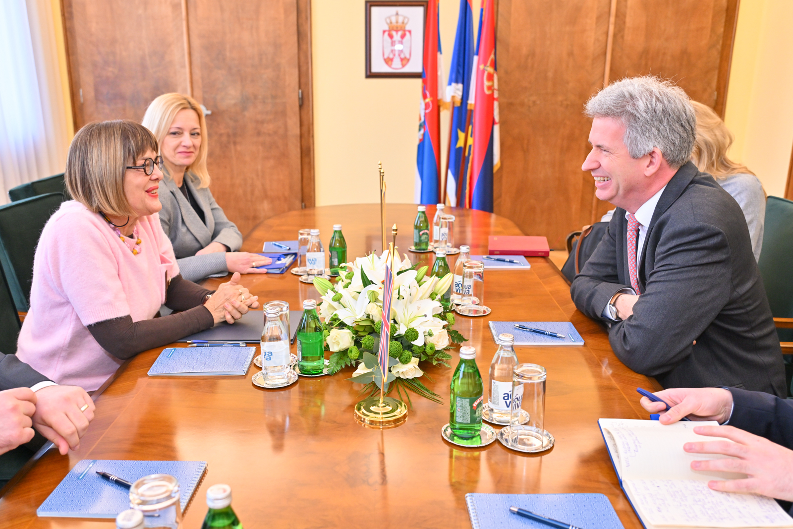 Председница Покрајинске владе Маја Гојковић разговарала је данас у Покрајинској влади са амбасадором Велике Британије у Републици Србији, Њ.Е. Едвардом Фергусоном, о унапређењу билатералне и међурегионалне сарадње, са посебним акцентом на улогу Аутономне покрајине Војводине.