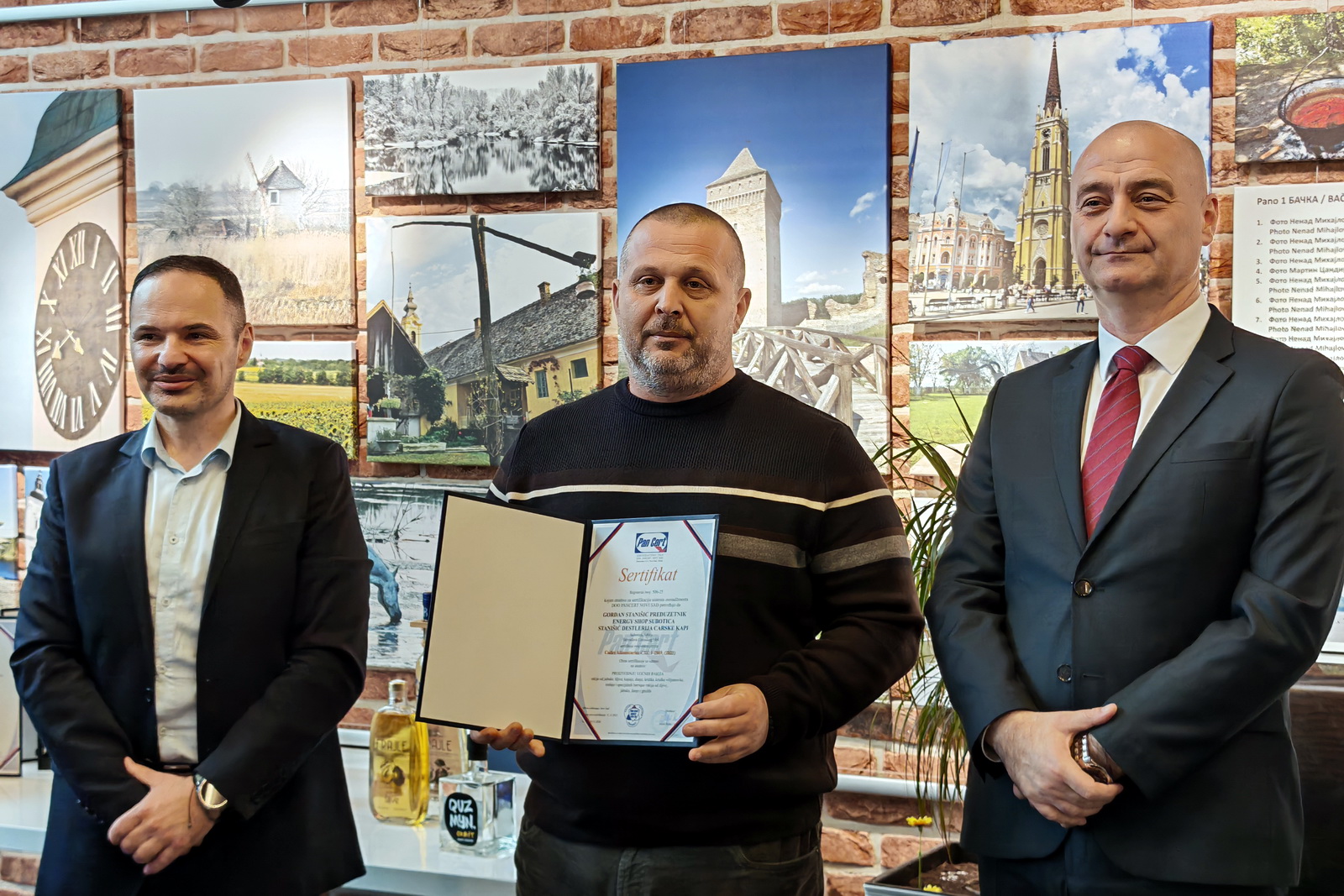 Покрајински секретар за привреду и туризам др Ненад Иванишевић уручио је данас сертификате произвођачима јаких алкохолних пића након завршетка пројекта „Сертификација произвођача јаких алкохолних пића у циљу извоза производа и надзора произвођача јаких алкохолних пића у АП Војводини“.